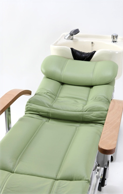 空〜CuU〜はカット・カラー・パーマをはじめとして、トータルビューティーを提供することをモットーにしておりますが、他の訪問理美容との最も大きな違いはシャンプーであると考えております。ヘアスタイルにはこだわらずに、ただ短くするだけであれば、シャンプーは必要ないかもしれません。しかし、質の高いカット技術(持ちが良く、簡単にセットができる)、頭皮の健康促進、パーマやカラーなどのワンランク上のヘアスタイル、そしてプロの手によるシャンプーでのリラックス効果に期待できる精神面での健康促進には、本格的なシャンプー設備がかかせません。